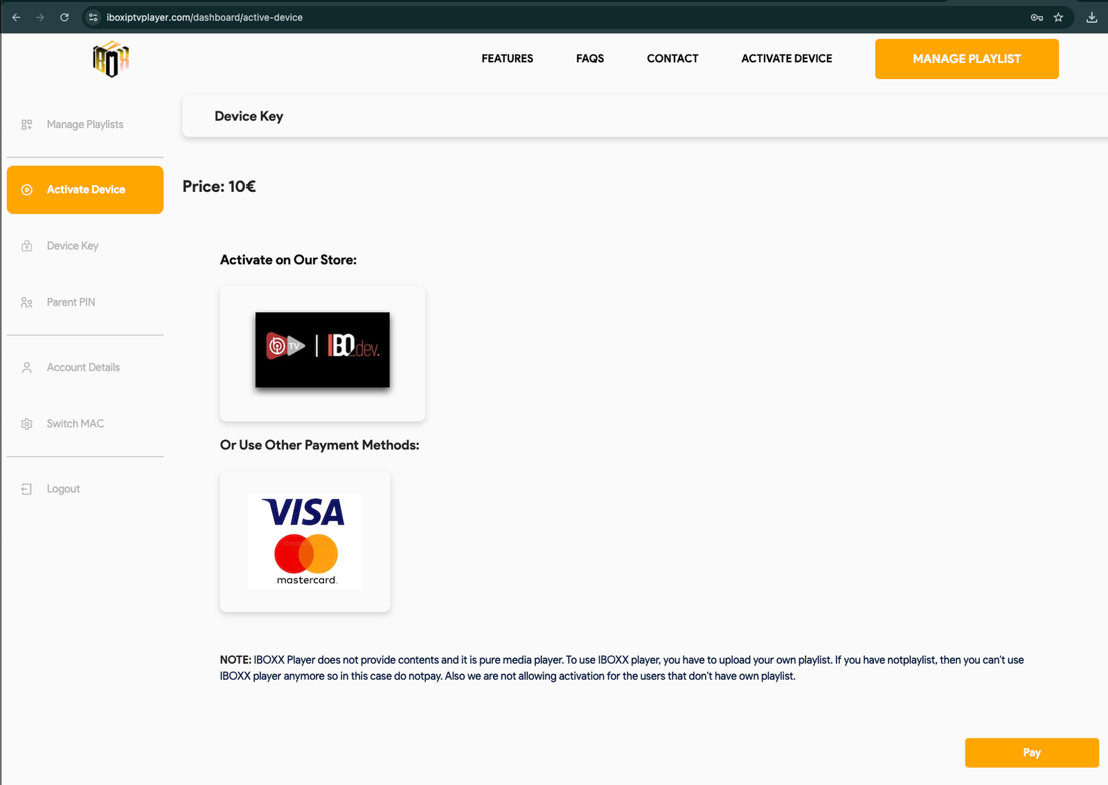IBO XPLAYER est comme les autres applications payantes (SET IPTV, NET IPTV, Smart STB, …) elle offre 7 jours d’essai gratuit, après cela vous devrez l’acheter sur leur site à 10€ pour l’activer à vie sur un seul appareil ou TV .